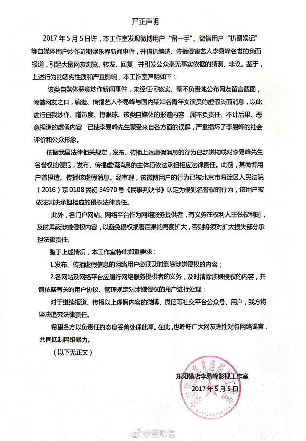 实则是某些营销号的造谣生事。发的微博主要是说李易峰和杨幂存在不正当关系啥的。李易峰方面已经发出声明,呵斥这一行为。你们觉得要不要严惩这些大V啊?
