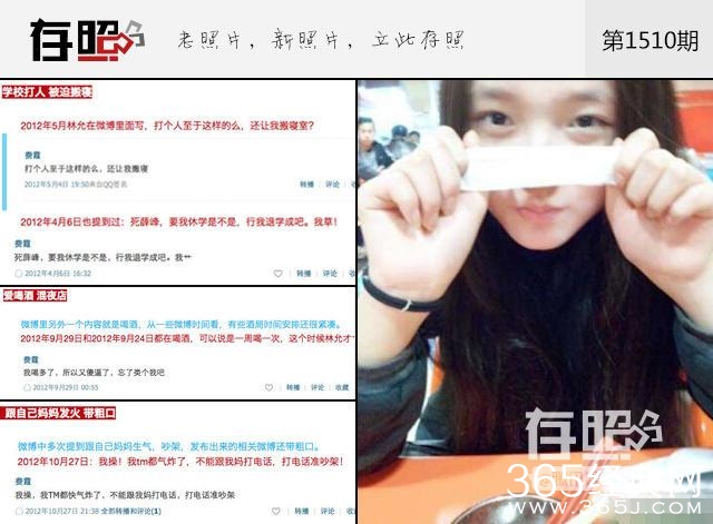 【林允早期微博曝光她喝酒打人爆粗口】新一代“星女郎”林允因为出演《美人鱼》成为小花中的潜力股。然而人红是非多,出名不久她就被扒出了早恋、喝酒、打架、爆粗口等负面,出卖真相的恰恰是她自己早年发的微博。虽然她将2013年之前的内容全部删除,网友还是从历史头像水印中找到了她的QQ空间,顺藤摸瓜翻出来她早年发的微博,没想到一向以清纯少女形象示人的林允(原名费霞),竟然经常在微博上爆粗口,带有不雅字眼的口头禅随处可见,因为在学校打人,被迫搬出寝室,甚至跟自己妈妈发火也带粗口,不禁令网友错愕。(图左林允微博爆粗口内容截图,图右林允早年在微博晒照)
