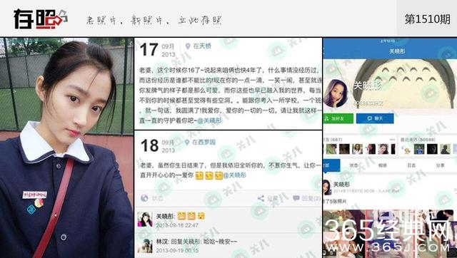 近日,有关八网友曝光了关晓彤中学时期的人人账号,2013年生日时,“男友”发文写道:“老婆,这个时候你16了,说起来咱俩也快4年了……”网友据此推测,关晓彤大概12岁就开始与这个男孩交往了,期间两人在社交账号上互动频繁,还经常会有一些小情侣之间打情骂俏的内容,据爆料,两人关系直到关晓彤以备战高考为由提出分手才结束。在网友的心目中,“国民闺女”关晓彤一直是个乖乖女,学习成绩也非常出色,是典型的“别人家的孩子”,然而早恋在传统观念上打破了这种美好的印象,引发网友热议。其实,很多明星都被早期社交账号坑过,曝出了不少小秘密。(图中为关晓彤与男友甜言蜜语,图右关晓彤人人账号)