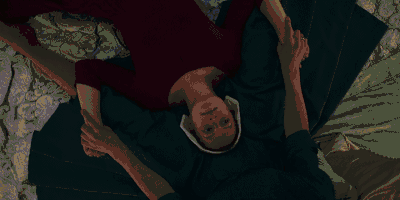 于是有了这场极其怪异的3p床戏,女主角看着天花板回忆起琐碎的日常生活显得异常冷静。事后,女主人抑制不住自己的愤怒让奥芙弗雷德赶紧离开房间。奥芙弗雷德说,躺着更好受孕。