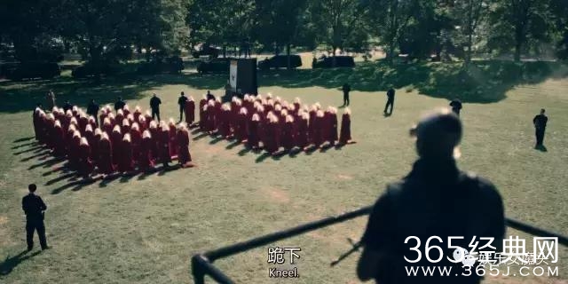 使女们身着红色衣服头戴白帽,无论在哪里都有军队看管。