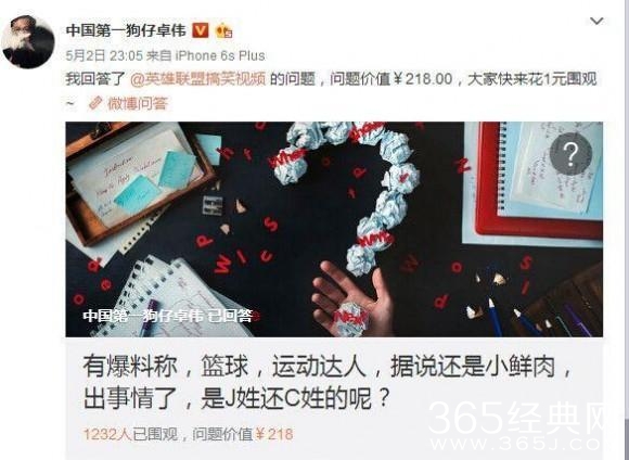 只是除了娱乐圈之外,卓伟的手还伸进了大热的体育圈,在前几天还有网友咨询过他某著名篮球运动员的八卦消息。