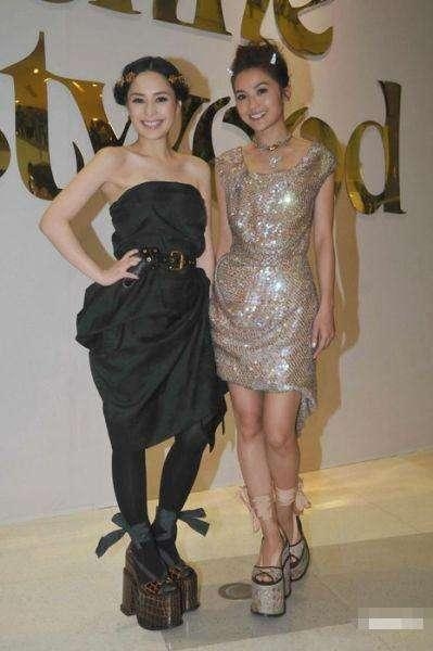 由于两人身高不高,就此原因来说她们穿恨天高也算可以理解。不过哪怕要穿恨天高也不要选太夸张了,这几年阿SA在穿着上已经有所变化,而阿娇对驴蹄鞋似乎还是有偏执的喜爱。
