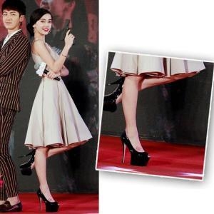 虽说经常穿平底鞋,但参加活动还是要正式点穿双高跟,走走红毯,但搭配的都是正常高度的高跟鞋,还不至于到恨天的地步。