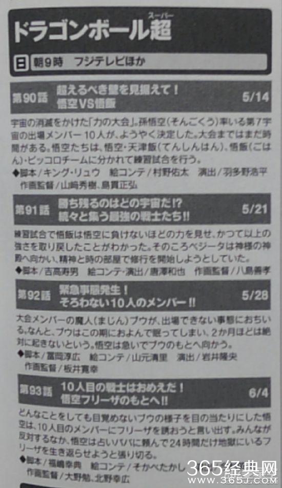 6月4日,《龙珠:超》93集“第10个战士就是你!悟空去找弗利萨!!”:面对无法唤醒的布欧悟空提出找弗利萨,大家都反对,但是悟空还是去拜托占卜婆婆,让地狱的弗利萨回到人间24小时。