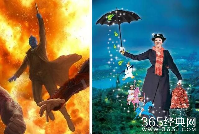 勇度抓着自己的箭降落时,星爵奚落他像是《欢乐满人间》中的仙女保姆玛丽(Mary Poppins)。