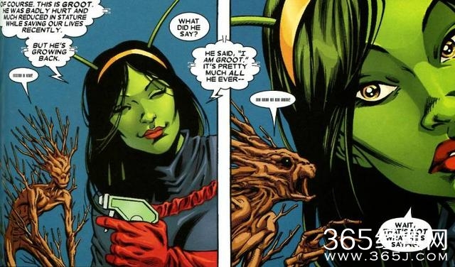 “I am Groot”的字样经常出现在字幕中,然后又突然变成“翻译”后的正常字幕。