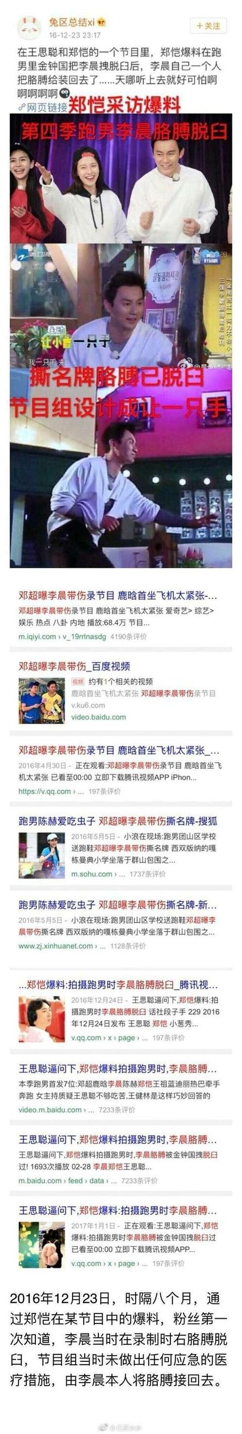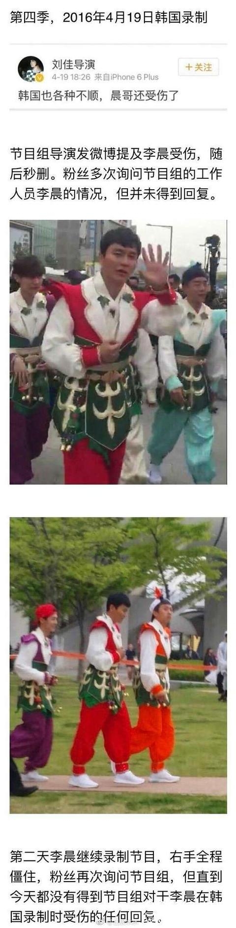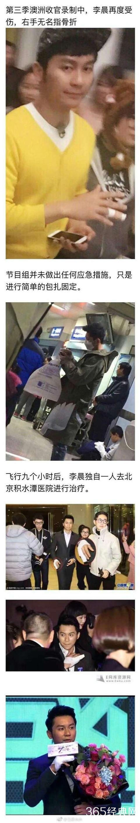 这个节目居然这么危险……我就知道他脱臼过一次,然后剪成了他让别人一只手。这么一看,李晨好可怜,九个小时候才去医院……
