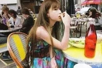 两人单独行动也是愿意去路边摊吃饭。baby用手往嘴里塞东西。