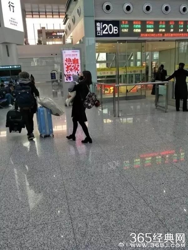 助理拉着箱子,陈妍希在后面抱着孩子,那几天天气还没有回暖,孩子裹得像个棉球一样,像我们普通人一样要去火车站赶火车。