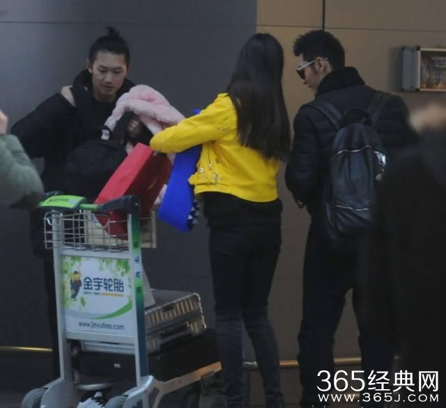 行李整理完之后,baby和黄晓明把箱子搬到了推车上进入机场。