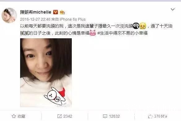 陈妍希也是很接地气的人,生完孩子之后也像正常的产妇一样,好多天都不能洗头。