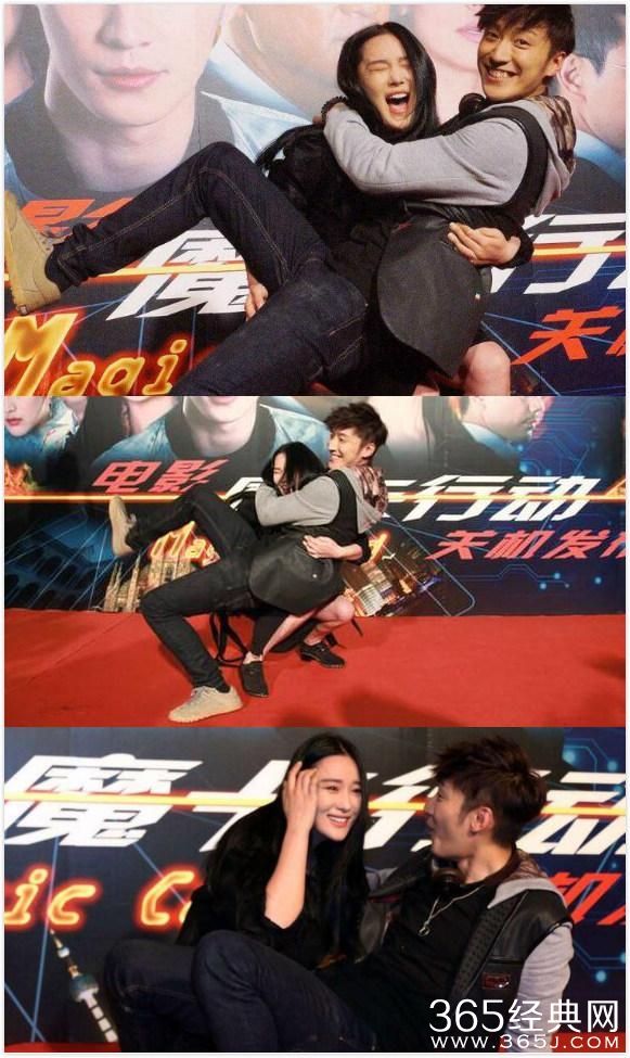 还是林志玲给力,轻轻松松的抱起黄渤(黄渤可不轻哦),而且姿势奇特。