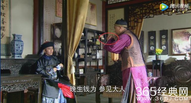 这是由杨智谦,何振华执导,赵毅,柴碧云,刘金山,方青卓,胡亚捷,杜奕衡,杨凯程,黎源,白海涛,苏国涛等主演的电视剧《“糊涂”县令郑板桥》里面的一个场景。可以看到是右手抱左手,这就是错误的拱手礼。