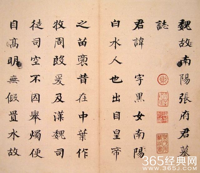 《张黑女墓志》,全称《魏故南阳太守张玄墓志》,又名《张玄墓志》。铭文峻宕朴茂,结体扁方,虽为楷书,有隶书遗意,原石久佚。何绍基于1825年,觅得此墓志旧拓本,凡十二页,每页四行,满行八字,为传世孤本,大喜过望,自称得此拓本后,“旋观海于登州,既而旋楚,次年丙戌入都,丁亥游汴,复入都旋楚,戊子冬复入都,往返二万余里,是本无日不在箧中也,船窗行店,寂坐欣赏,所获多矣”,又称“余既性嗜北碑,故摹仿甚勤,而购藏亦富,化篆、分入楷,遂尔无种不妙,无妙不臻,然遒厚精古,未有可比肩《黑女》者,每一临写,必回腕高悬,通身力到,方能成字,约不及半,汗浃衣襦矣”。40句充满正能量的经典励志语录