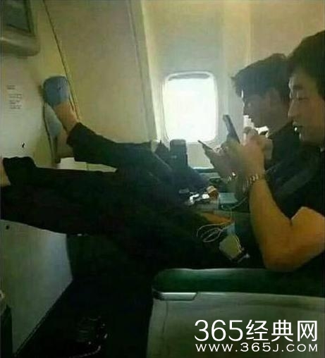 无处安放的双腿,杨洋在飞机上认真的玩着手机也很顺势的抬起双腿放在墙上帮忙受力。