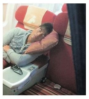 睡姿很销魂,飞机上舞王郭富城也没了活力,乘飞行间隙赶紧补一觉,这熟睡程度若是火车还害怕误了车程。