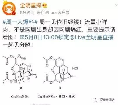 第二条是一个公式,码字狗表示看得一脸懵逼,翻看评论才知道,这是海洛因分子式。这是要告诉大家又一小鲜肉沾染了毒品,即将幻灭吗?