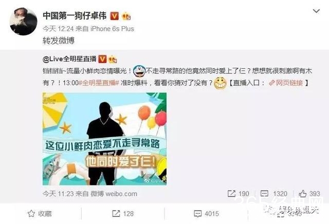 千呼万唤始出来,,卓伟口中所说的周一有料,还是流量小鲜肉,结果曝光了黄景瑜恋情。