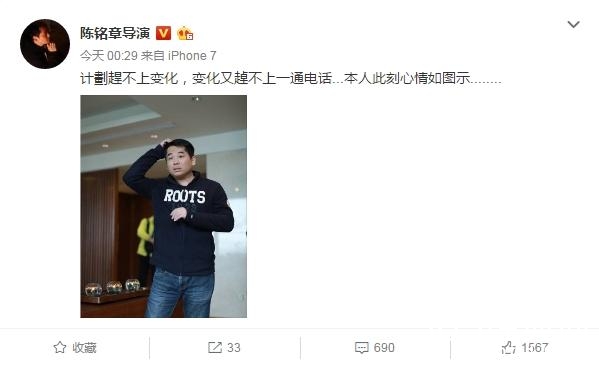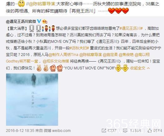 你方唱罢我再登场。陈铭章导演昨天又在微博上表示,计划赶不上变化。言语中的意思好像又是把开拍《再见王沥川》提上日程?反正粉丝已经疯狂了。
