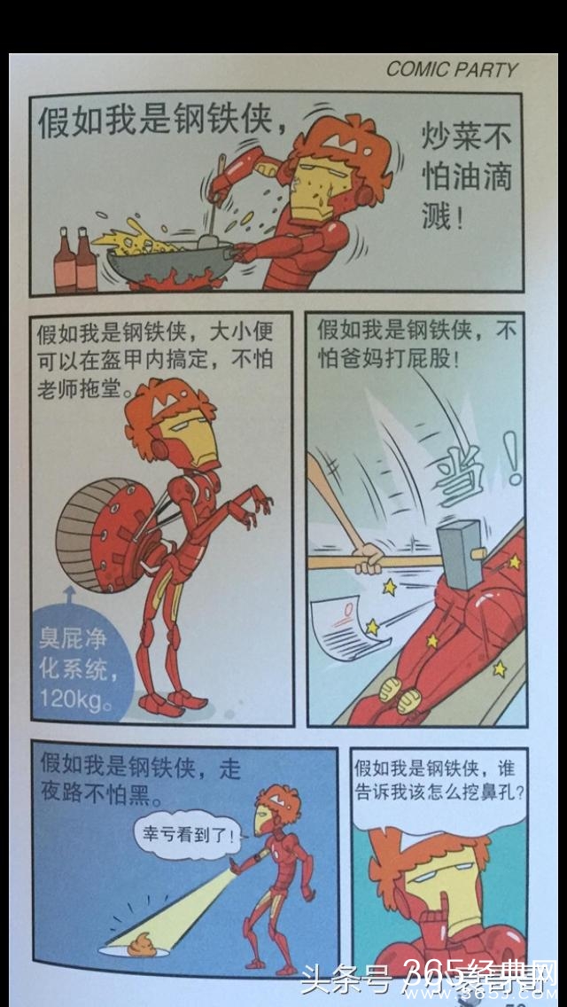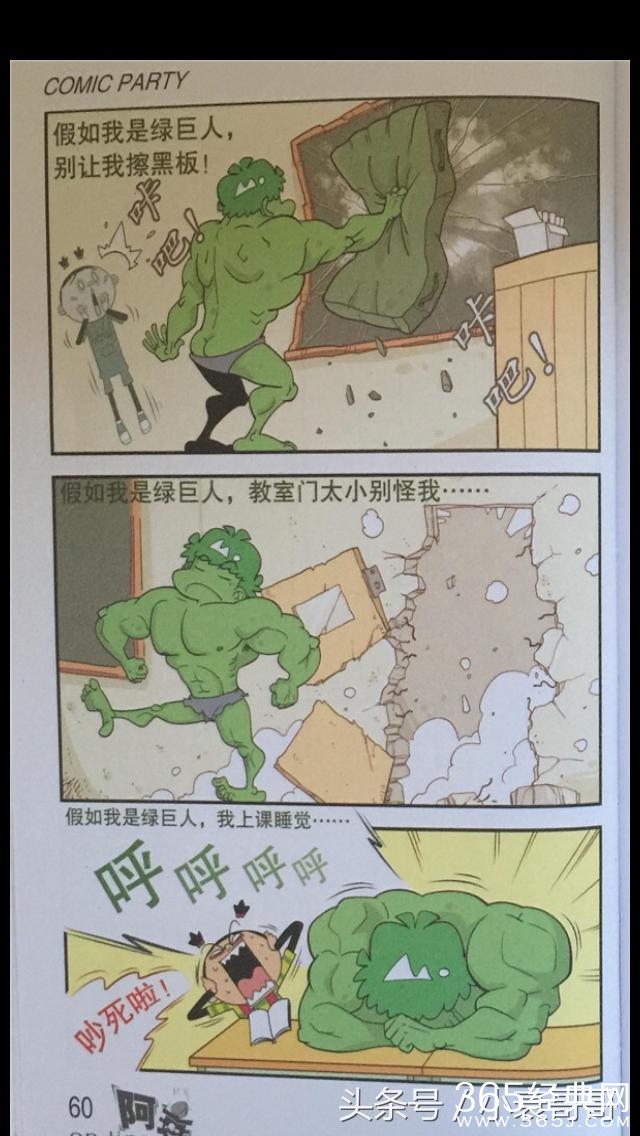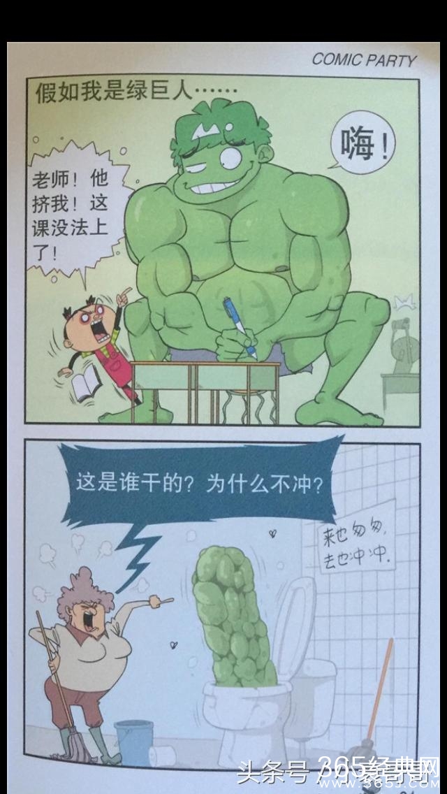 猫小乐作品中的小衰整天不想这干正事,只知道天马行空的幻想,一会自己是钢铁侠一会是绿巨人的,可是当小衰变成绿巨人上完厕所保洁阿姨就特别尴尬了,不愧是绿巨人,什么都是巨大的。