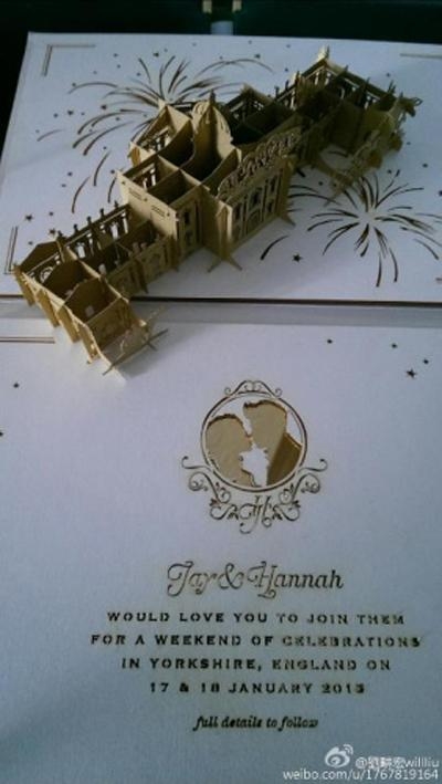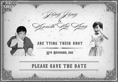霍启刚和郭晶晶的喜帖也设计的很有意思,先是发布了两人童年时讲电话相片的电子喜帖,寓意共偕连理,正式喜帖则是一本厚达22页的纪念本,记录着两人的成长轨迹以及两人的爱情见证,含8年间周游世界的身影和在英国、希腊拍摄的婚照。
