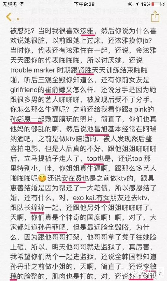 这一出比其他的更热闹,因为泡菜男是方块(韩国娱乐公司CUBE Entertainment)的人,所以可能他平时嘴里讲的都是艺人,这次撕逼呢网红全给爆出来了,简直了,牵扯到一大波人包括泫雅张贤胜崔俞娜孙娜恩池昌旭TOPKAISUHO李敏镐朴宝剑雪莉……