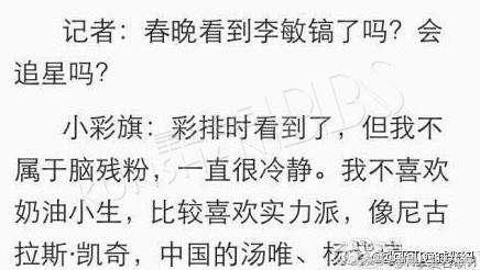 成名后的小彩旗,在一次采访中被问及李敏镐的时候。她说自己不迷恋,不属于“脑残粉”,因为这件事小彩旗被网友骂惨了,当时当红的李敏镐的粉丝骂口水战持续五个月。
