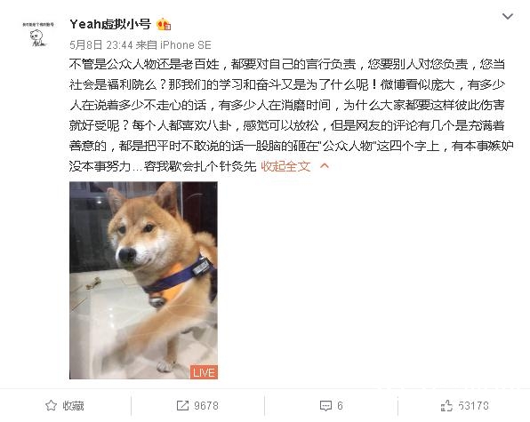 而5月8日晚,她又怒怼道:“不管是公众人物还是老百姓,都要对自己的言行负责,您要别人对您负责,您当社会是福利院么.....有本事嫉妒没本事努力。”