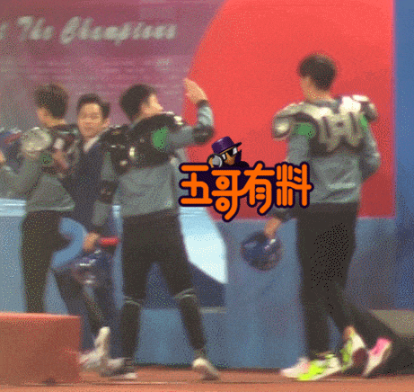 赢得游戏后二人大方熊抱,还击掌庆祝。