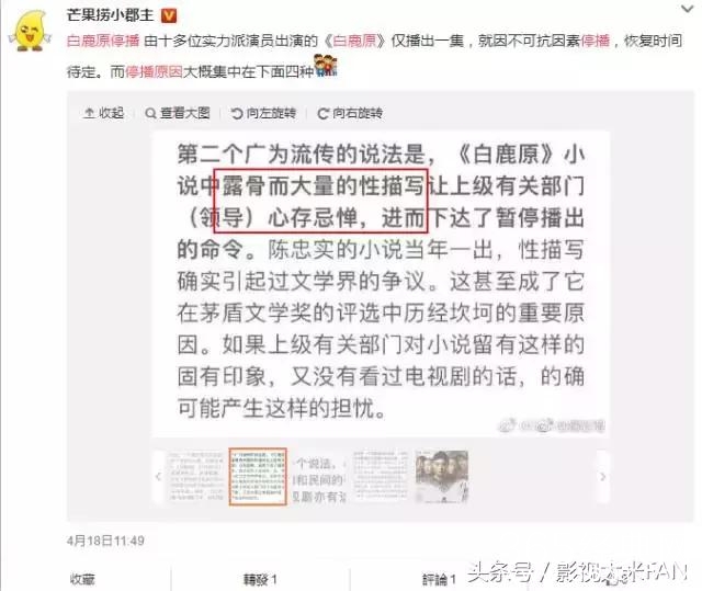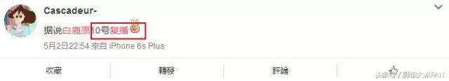 而近期各微博大小号们不知从哪得来了消息:《白鹿原》10号复播!