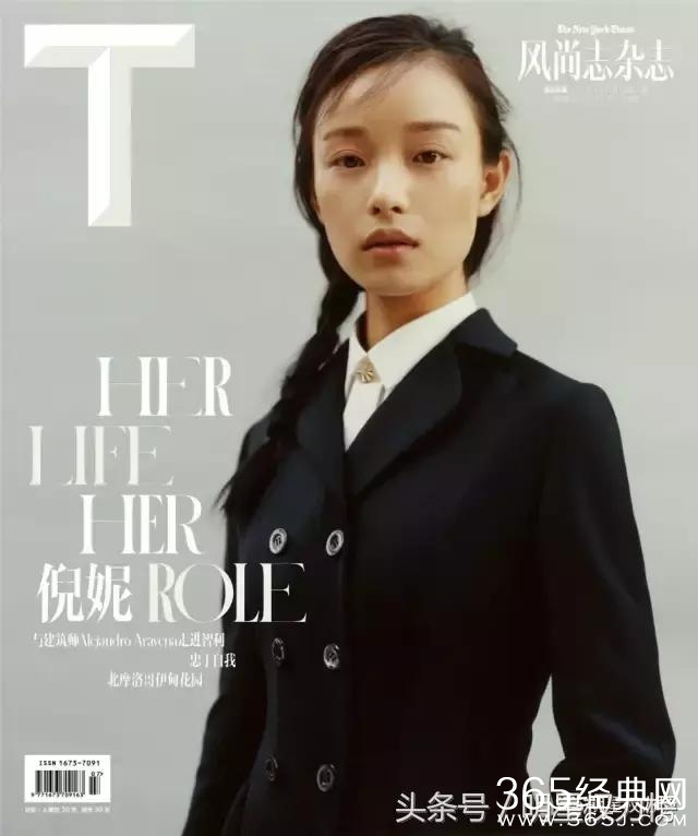 倪妮素颜登上《T》杂志封面,穿上稍显年代感的服装依然清秀淡雅。