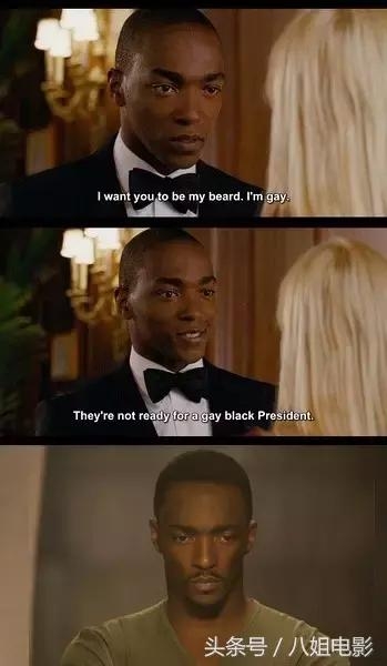 美队的好基友——猎鹰也在其中,出演的角色还是一个邀请女主形婚的同性恋政客。