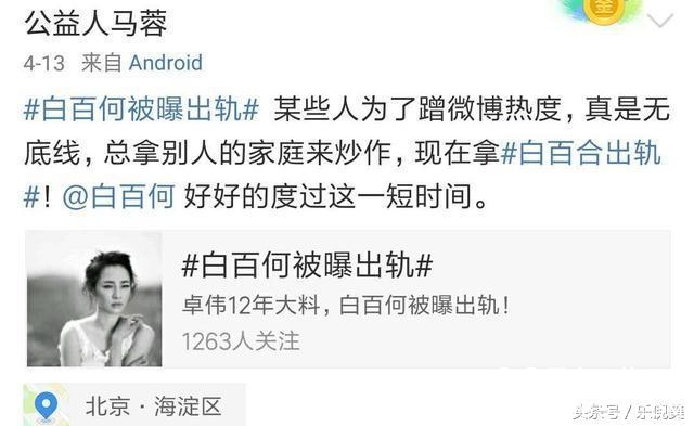 早前白百何被爆越轨时,马蓉还在该微博安慰白百何,而且还为网友拿白百何越轨炒作快乐,究竟我们的重视度都放在了白百何和陈羽凡身上,她能够安静地待一段时间了。