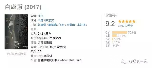 《白鹿原》首集高达9.2的豆瓣评分,其实完全让人充满信心。