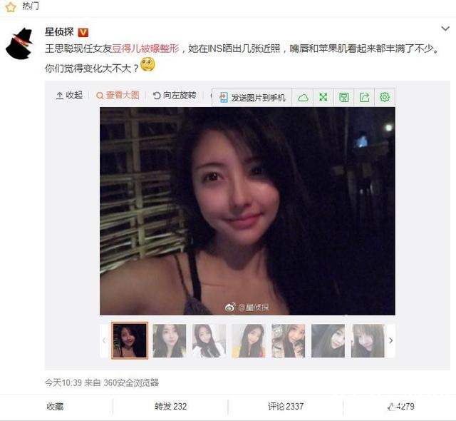 最近,王思聪现任女友豆得儿因为过度整容登上热搜...