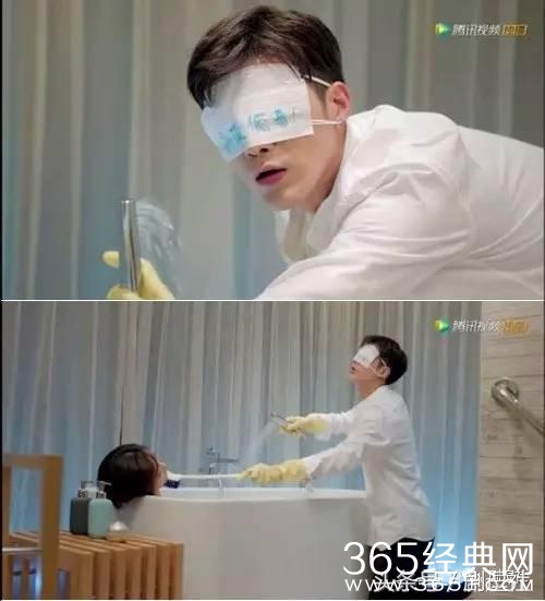 小泽泽为了帮喝醉的女主洗澡也是煞费苦心:戴着“我没偷看”的眼罩,拿着刷子在空中挥舞,还要担心女主吐出来!