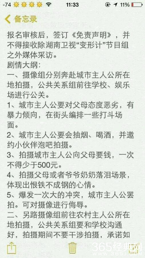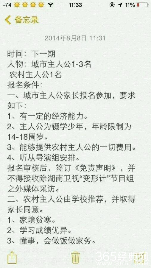 之前有关《变形记》的台本以及招募演员的公告也曾在网络上曝光,怪不得《变形记》后来的男女主人公颜值越来越高呢~