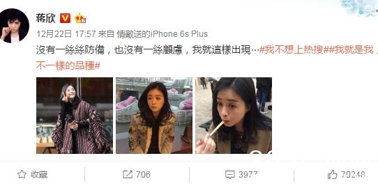而“蒋欣胖了”这个话题更是时常登上热搜榜,而她自己也是时常调侃自己太能吃了..