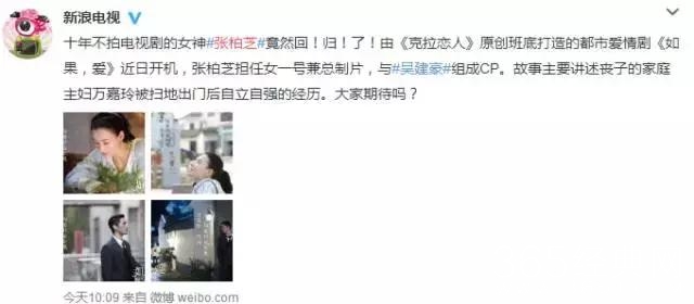 张柏芝回归拍的这部剧是《如果,爱》,张柏芝担任女主角和总制片,故事主要讲的是丧子的家庭主妇万嘉玲被扫地出门后自立自强的经历。