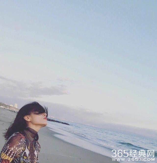 张蓝心在海边抬头仰望天空上演“侧颜杀”。