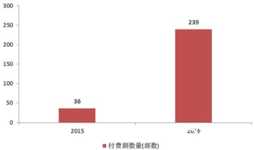 截至2016年12月,行业整体上线付费剧数量为239部(包括海外剧和2016年内已知的付费剧),相比2015年的36部增长了近6倍。