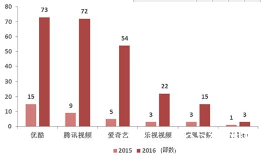2015-2016 年视频网站整体付费剧数量对比