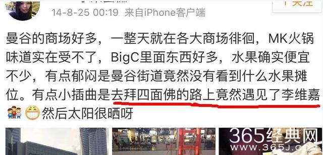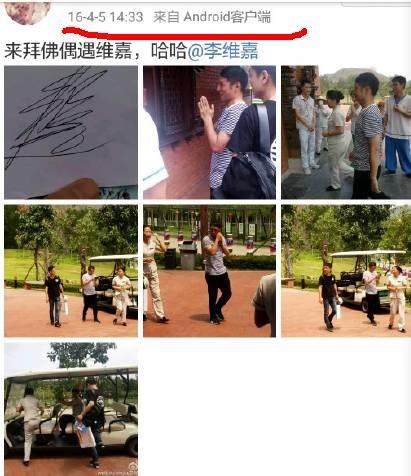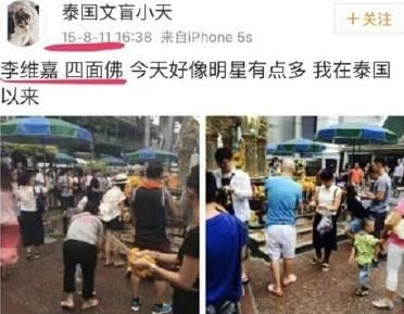 2014年8月23日李维嘉拜四面佛被发现,8月25日,有网友在去拜四面佛的路上碰到李维嘉。