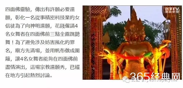 话说泰国四面佛最爱看脱衣舞,这已经是不是秘密的秘密了,台湾媒体报道过,有一个贵妇许了十个愿望,结果十个愿望都达成,于是请了四名专业人员去跳艳舞