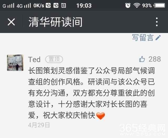 讽刺的是,被指抄袭的广告制作方“局部气候调查组”,不久前曾公开发表声明,表示清华大学校庆的宣传文案中“借鉴”了他们原创的长图叙事模式。但是,这一次,他们自己却多次在长图之中直接或间接以他人创作的形象或作品为素材。