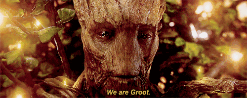 当时说的最后一句话,不是「I am Groot」,而是「We are Groot」。让人泪目。