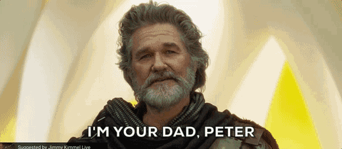 在小的时候,地球人母亲去世,还告诉他「你父亲是外星人天使」。后来,星爵被“掠夺者”的勇度抚养长大。养父勇度却说「你父亲是个人渣」。