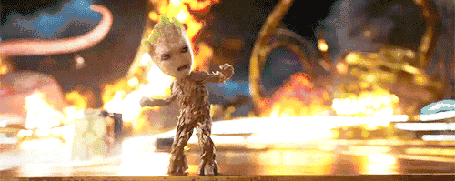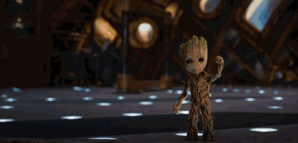 电影一开始,在宇宙一片混乱的打斗中,木树人却在一旁,听着地球的流行歌,跳着尬舞。