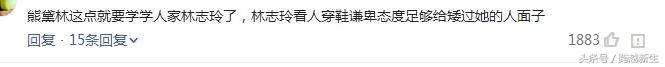 网友们纷纷吐槽,说熊黛林情商低,说这种场合就不要穿高跟鞋了,显的老总都很矮,很尴尬,还有的说叫她多跟林志玲学习,林志玲在这方面做的很好